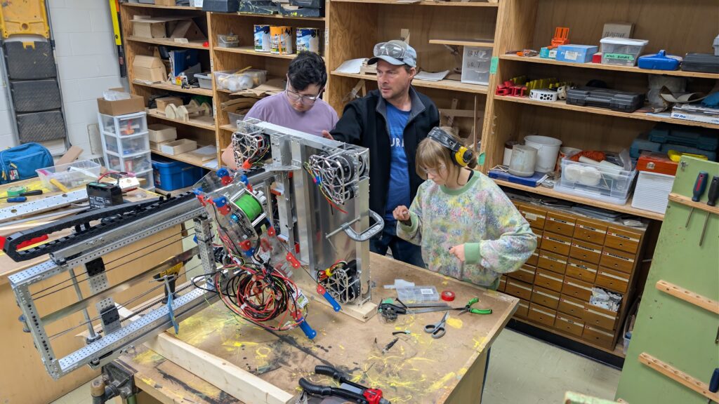 Immediately following our first competition using a swerve drive base, our team participated in a recruitment event for our school called Discover Rockway. This is an annual event at Rockway Mennonite Collegiate in Kitchener, Ontario, designed for families to learn about the school’s Grade 7-12 programs and community. Held on Thursday, November 6, 2025, the evening started with arrival and registration, followed by introductions from the principal, a current student and a parent, and a performance by the senior choir. Afterward guests explored the campus at a Discovery Fair with refreshments, engage with teachers, students and parents, take guided tours if they like, ask questions, and try hands-on activities to get a feel for what Rockway offers. The goal is to help prospective students and their families “discover” whether the school is a good fit for them.